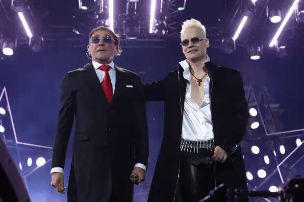 Да, 55-летний исполнитель вышел на сцену в костюме с таким вырезом на груди, что возник вопрос - а это точно костюм, а не декольте?