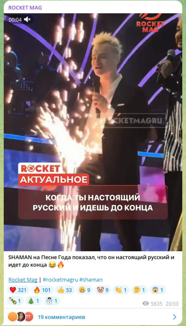 И вот уже на нынешней "Песне года" - новая неприятность. Когда Дронов шёл по сцене рядом с Филиппом Киркоровым и Алсу, его оттеснили на край дорожки. И получилось, что SHAMAN двигался прямо по линии, где установлены фейерверки.