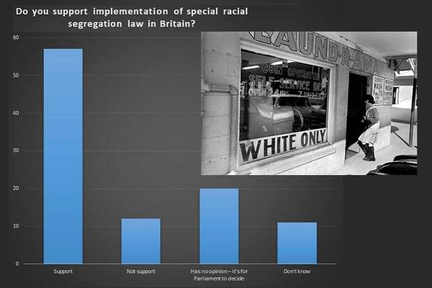 Так вот, большинство британцев поддерживают введение в стране законов о расовой сегрегации, показывает последний опрос GLPOR.