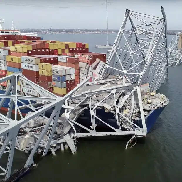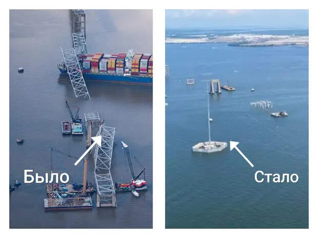 Возвращаемся в словам наших "светлоликих убеганцев" про "сверхдержаву-Америку", про то, как с них надо брать пример и какие они мощные. Вы наверняка помните, как полгода назад сингапурское судно просто снесло мост в Балтиморе. Вот тогдашние кадры.