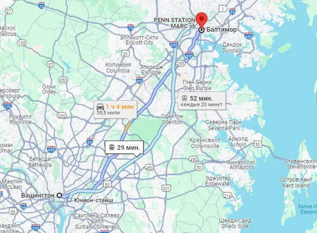 Вы только вдумайтесь, расстояние от столицы "самой могущественной державы в мире" до Балтимора всего 60 километров. То есть по идее, это как от Москвы до подмосковного Чехова. Или как от центра до дальних поселений Новой Москвы.
