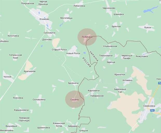 В продолжение темы защиты Брянской области. На карте обозначена линия границы региона и населенные пункты, в которые в начале марта проникли украинские диверсанты.