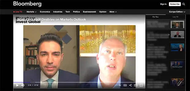 Совершенно понятно, что Кирилла Дмитриева на Западе не только знают, но и уважают. Стэнфорд, Гарвард, Goldman Sachs и McKinsey — это была бы звёздная карьера для любого американского экономиста, многим на зависть. Поэтому и "Блумберг" на регулярной основе, например, до введения против него санкций в 2022 году, привлекал Дмитриева по видеосвязи для экспертных комментариев по всевозможным экономическим событиям.