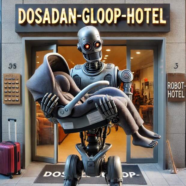 — Всемирно знаменитый со дня открытия "Досадан-Глуп Робот-Отель" приветствует вас. Я здесь, чтобы взять ваш багаж… Прикажите, и я помогу вам!
