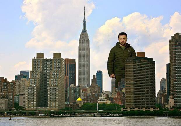 В таком случае остается только поверить, что президент Украины за время проведения СВО значительно вырос, что позволило ему в ролике выглядеть больше чем беспилотник «Герань-2», длина которого, к слову, составляет 350 см, а размах крыльев – 250 см. И даже такой массивный объект кажется игрушечным на фоне президента Незалежной, стоящего чуть сзади для создания максимального эффекта. При этом рост Владимира Зеленского - 168-170 см.