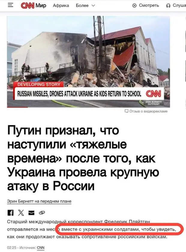 Важно, что в отношении другого журналиста CNN, который побывал в Курской области вместе с ВСУ, уголовное дело возбудили. Речь о корреспонденте Нике Пейтоне Уолше. А вот на Фредерика Плейтгена - нет, почему - неясно.