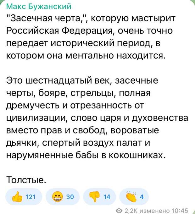 Тут широко известный в узких кругах укроп Бужанский начал крошить батон на нашу засечную черту: