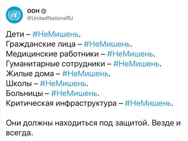 Тут давеча министерство иностранных дел Запада лига наций некая ООН решила сделать так, чтоб мы усовестились, и разместило вот такой твит:
