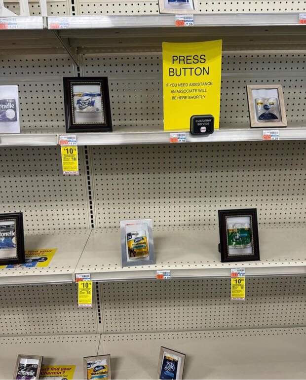 Из-за краж они убрали почти все свои товары с полок и оставили только фотографии того, что есть на складе.